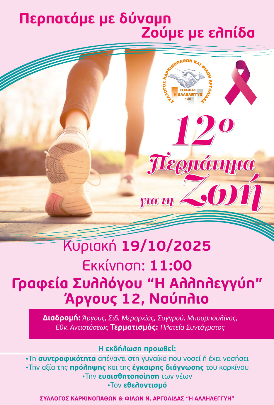 Ο Σύλλογος Καρκινοπαθών και Φίλων Νομού Αργολίδας (ΣΥ.ΚΑ.ΦΙ.ΑΡ.) "Η ΑΛΛΗΛΕΓΓΥΗ" δημιουργήθηκε το 1993 και έχει περίπου 1.100 μέλη, εκ των οποίων οι 650 είναι ασθενείς. Ενημερώνεται για όλες τις επιστημονικές εξελίξεις συμμετέχοντας σε συνέδρια, ημερίδες, ομιλίες και συναντήσεις. Έχει ουσιαστική παρουσία στην ΕΛΛΟΚ, στην ECPC, στον Πανελλήνιο Σύλλογο Ασθενών, αλλά και σε πλήθος εκδηλώσεων φορέων και συλλόγων σε όλη την Ελλάδα.
